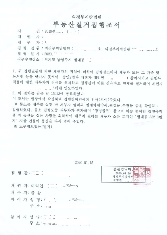 철거집행조서(의정부 집행관)